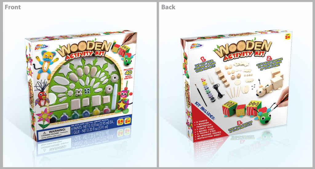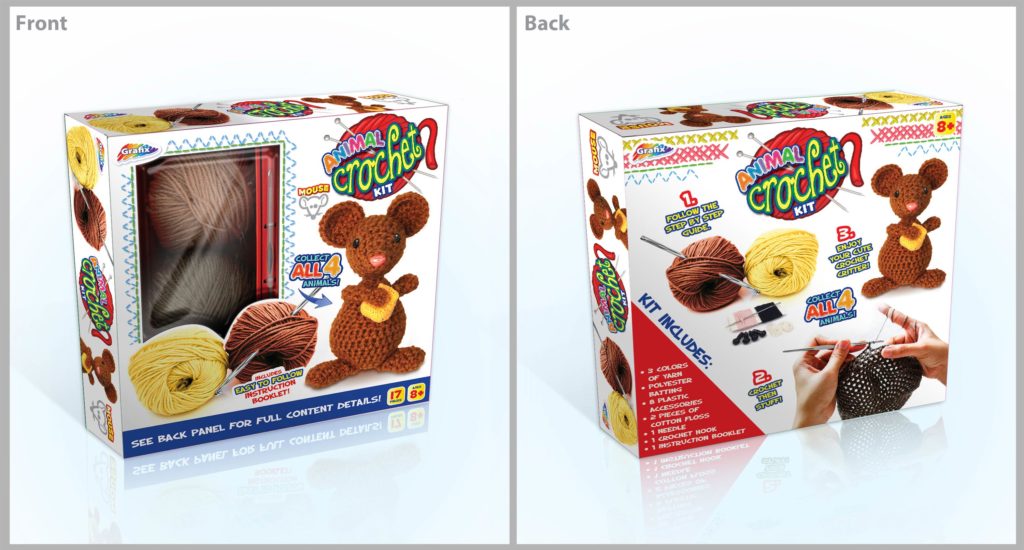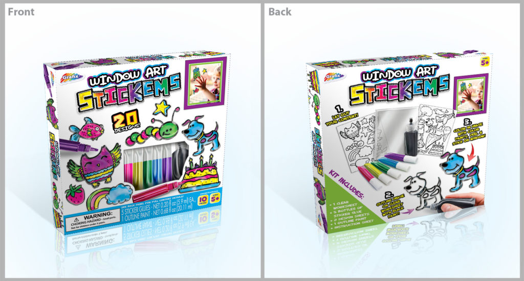 Fully designed concept and look of packaging to be used for new children’s craft product line. Established the uniform standards to be carried across from product to product to maintain a recognizable look but still keep a unique presence pertaining to each product. I created all product logos and photoshopped product images – almost all front product images of packaging were made up because they did not exist.