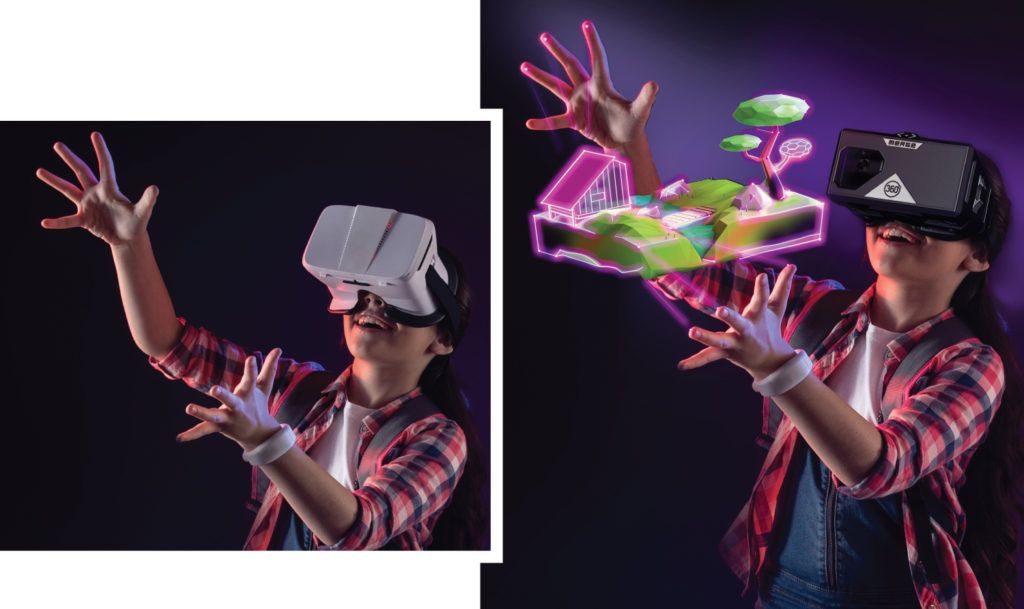 By finding stock images, I was able to photoshop images of products and fantasy elements on top of the original image. I also enhanced the background and other elements to bring focal points to the necessary areas. These images were used on business cards that were given out at a librarian focused event to encourage libraries to get involved with the VR product arena.